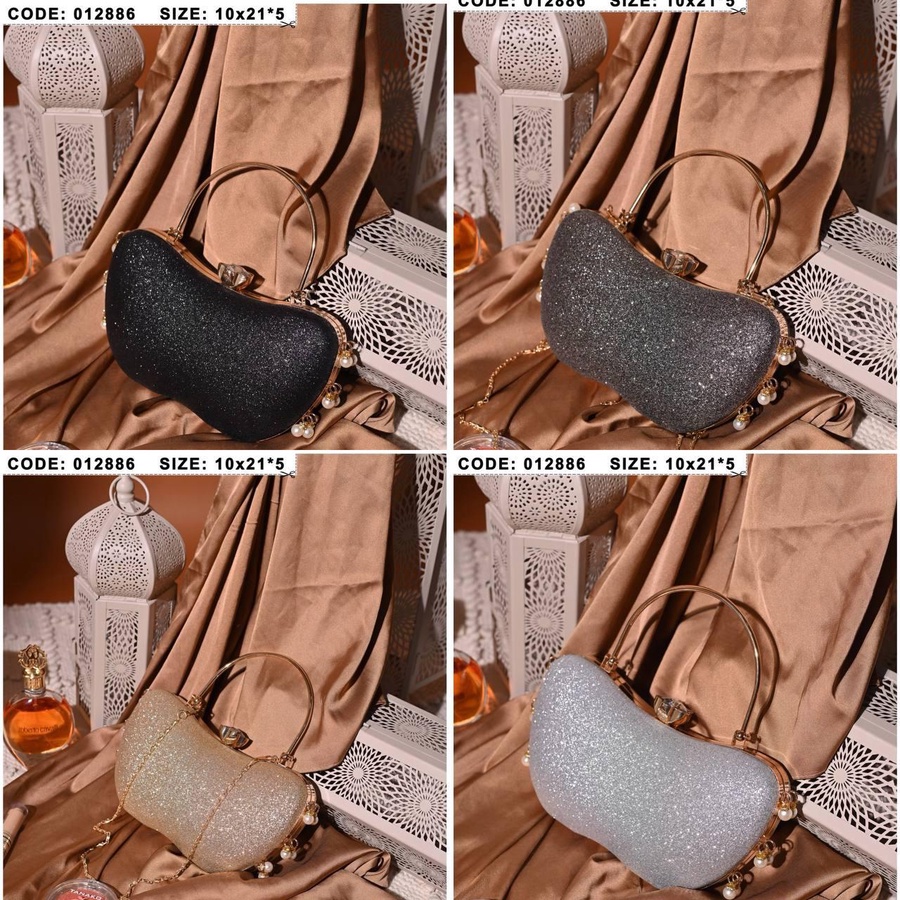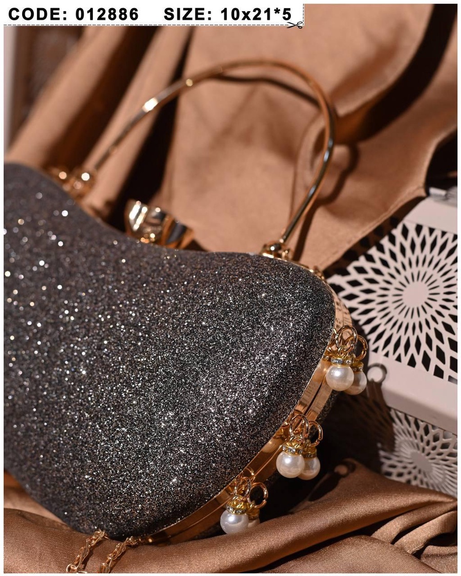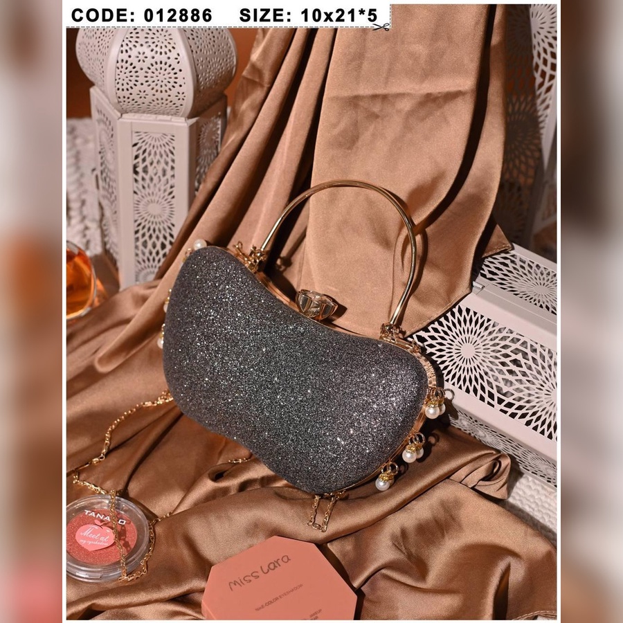 مزودة بمقبض معدني دائري أنيق مع قفل كريستالي فاخر، بالإضافة إلى سلسلة للحمل، لتناسب الاستخدام ككلاتش أو كشنطة كتف.